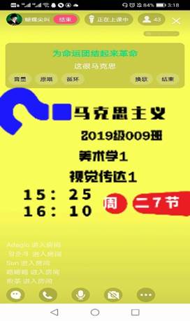 除了在超星学习通建立翻转课堂之外,我在QQ也分别建立了对应的班级群,并另外建立了各班负责人加教师的小群。利用两个平台功能,有效协调组织教学。为每个班的QQ设计了海报式的群头像,显示上课科目、班级号、上课时间等关键信息,在发起QQ课堂,在等待同学进课堂及正式上课前的空档时间里,对群课堂的语音封面进行装饰,第一次课用各班级的群头像做背景,但在操作中我发现每次都要更换图片,所以,在第二次课时就统一换成马克思的图片,为的是同学们能在多个学习软件和学习群中一目了然,方便同学们上课前能够很容易找到班级。