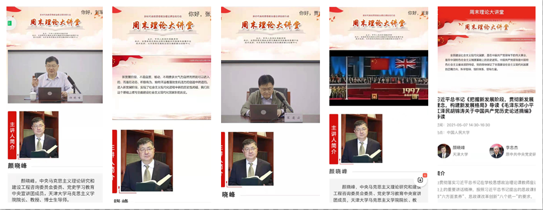 5月7日下午,1946伟德国际源自英国组织全体教师采取集中与自主相结合的学习方式,参加了全国高校思政课教师“周末理论大讲堂”第56讲的学习活动。首先天津大学颜晓峰教授主讲习近平总书记《把握新发展阶段,贯彻新发展理念,构建新发展格局》导学 ,然后原中共中央党史研究室李忠杰教授主讲《毛泽东邓小平江泽民胡锦涛关于中国共产党历史论述摘编》导读。