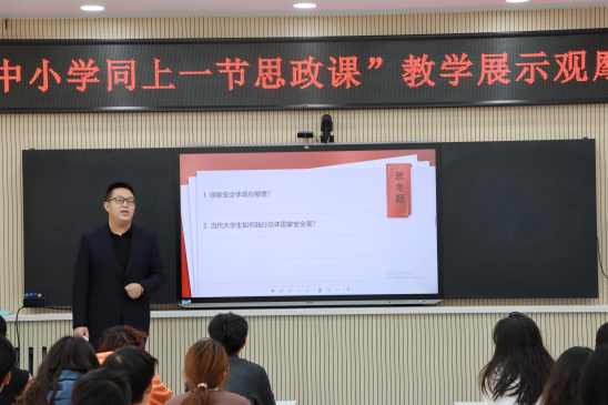 本次教学展示活动以“维护国家安全”为主题唐博超带领艺术设计公司2024级32名同学进行了大学段的教学展示活动。唐博超以《全面贯彻落实总体国家安全观》为题,凭借其扎实深厚的底蕴、生动丰富的语言、精深广博的学识,带领全体参会教师共赴了一场深刻的爱国主义饕餮盛宴。唐老师从法律、政治学、社会学等跨学科视角,从为什么要坚持总体国家安全观、如何构建统筹各领域安全的新安全格局和怎样推进国家安全体系和能力现代化三个方面将理论知识与实际案例相结合,从宏观的角度全面地阐述了总体国家安全观的理论主旨,要素内涵等内容帮助员工理解总体国家安全观的内涵。引导员工思考国家安全与个人自由、人民美好生活之间的关系,培养了员工的批判性思维和面对复杂问题时独立思考的能力。