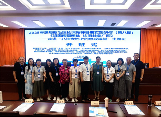 7月21日至27日,公司13名专职思政课教师赴全国高校思想政治理论课教师研修基地(广西大学)开展以“祖国南疆明珠绚丽壮美广西——走进八桂大地上的思政课堂”为主题的暑期实践研修活动。研修活动采取专题讲座、现场教学和实地考察等多种形式,把铸牢中华民族共同体意识、生态文明建设、红色文化传承、爱国主义教育等主题化作南疆大地上的生动教材,成为铸魂育人的“源头活水”。在理论学习环节,广西新闻出版局原党组副书记、副局长黄健教授以《祖国南疆明珠绚丽壮美广西——行走在八桂大地上新闻叙述的思政课堂》为题进行专题讲座。讲座立足广西全国少数民族人口最多省区的独特区情,通过新闻叙事与思政教育相融合的创新模式,梳理八桂大地各民族交往交流交融的历史轨迹,聚焦新时代以来民族团结进步与边疆繁荣稳定的显著成就,深化了教师们对“多元一体”中华民族格局的理解。在实践学习环节,广西壮族自治区博物馆是了解中华民族共同体意识的鲜活课堂,老师们驻足凝视馆中珍藏的文物、图片等史料,悉心聆听广西各民族间交往交流交融的鲜活故事,对民族文化交融发展有了更深入的理解,对铸牢中华民族共同体意识有了更直观深刻的认识;在百色起义纪念园,教师们重温邓小平、张云逸等老一辈革命家领导百色起义的峥嵘岁月,深刻感受党在革命战争年代的艰苦奋斗和丰功伟绩;在刘永福故居三宣堂,深入了解民族英雄刘永福率黑旗军援越抗法、抗日保台的壮举、感悟其忠勇爱国的反侵略精神、爱乡爱民爱兵的民本主义精神;在湘江战役临时指挥部三官堂,聆听红军突破湘江的英勇故事、追寻红色记忆;在湘江界首渡口,抛撒鲜花花瓣、诵读《湘江为英雄歌唱》,用真挚情感传递崇敬与追思,用心铭记生命铸就的信仰征程;在全国首批大思政课实践教学(青秀山)基地,教师们在沉浸式体验中,感悟生态文明思想的实践伟力,切身感受到习近平新时代中国特色社会主义思想在八桂大地的生动实践,为思政课教学积累了鲜活素材。