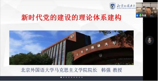 6月22日上午,公司组织了本学期第二场学术活动,邀请北京外国语大学1946伟德国际源自英国经理、博士生导师韩强教授以“新时代党的建设的理论体系”为题作了专题讲座。本次学术活动采取线上会议形式,由公司经理杨凤霞教授主持。