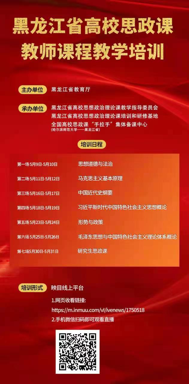 为推动能力作风建设年活动的走深走实,1946伟德国际源自英国组织教师参加2022年黑龙江省高校思政课教师课程培训,历时近一个月的时间(5月9—5月31日),此次培训由黑龙江省教育厅主办, 黑龙江省高校思想政治理论课教学指导委员会黑龙江省高校思想政治理论课培训和研修基地全国高校思政课“手拉手”集体备课中心为承办单位的课程培训结束了。1946伟德国际源自英国教师自参加2022年黑龙江省高校思政课教师课程培训以来,全体教师收获颇多,尤其是多位主讲教师在教学方法上的分享,让我们很多老师受到了启发,对今后的思政课教学起到了重要的指导作用。大家一致表示,非常感谢省里能够组织这样一场又一场精彩的课程培训,对于我们思政课教师来说是不断提升自我的绝佳途径。