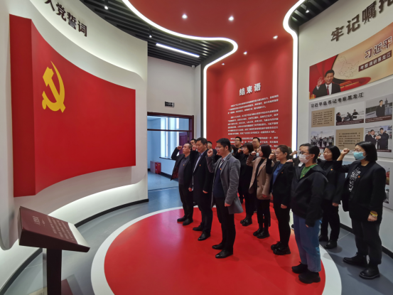 最后,参会教师党员面对党旗庄严地重温入党誓词,表达了全体教师党员对党绝对忠诚、坚定理想信念、牢记初心使命、勤奋履职担当、全心全意为人民服务的坚强意志和一往无前、开创未来的昂扬精神状态。