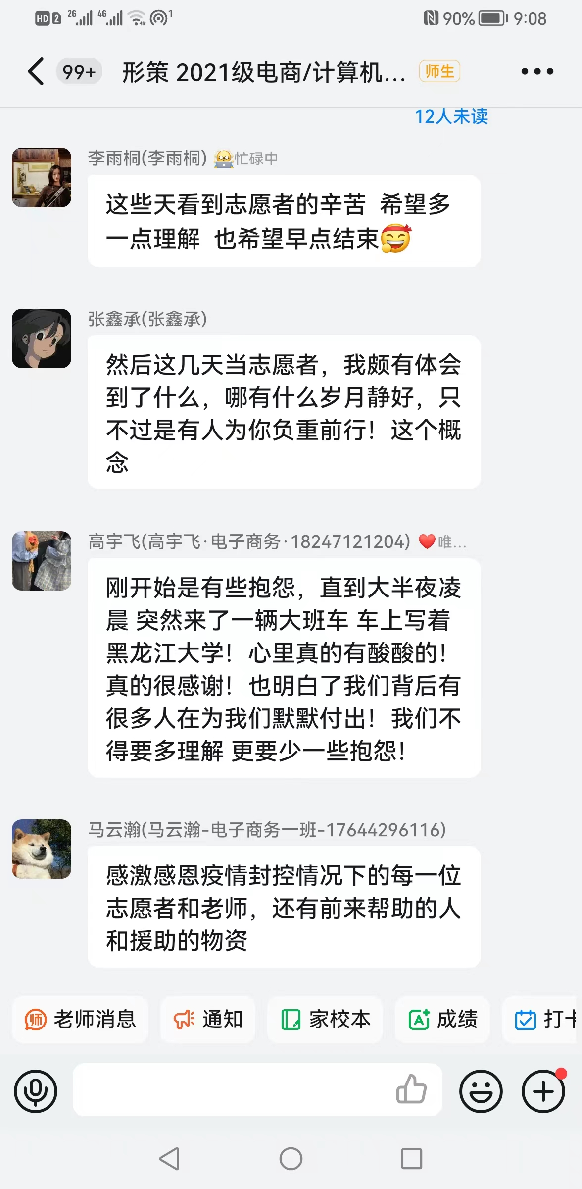 今天是进入公司参加“抗疫战”的第15天。回想起10月26日那个风雨交加的夜晚,仿佛就在昨日,但今天的我们,更从容了。在非常时期,也必然会多一些思考和感悟。看到在校工作人员匆匆的脚步,看到不分年龄不分岗位的“搬运队”肩扛手托急速搬运物资,看到每天三次到各个公寓急速送餐的“大白”们,听到各个临时党支部组织党员重温入党誓词的铮铮誓言,还有非常时期仍在默默坚守岗位的很多人......我们知道,他们的义无反顾,就是要守护好我们的校园,这些就是我们身边的感动!所谓英雄,就是平凡人在关键时刻的挺身而出;所谓担当,就是一些人一种无声的自觉。人生的每一次经历都是宝贵的财富,我们就是在经历中不断学习,不断成长。高山起于垒土,奋斗成就辉煌!今天,我们体会到了艰难,明天,我们会更懂得珍惜。今年的立冬节气已经过去,期待着冬去春来的时刻,相信不会太远。心中有梦不觉寒!