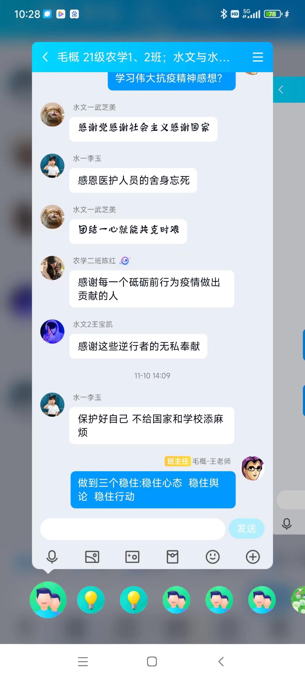 王文刚老师在课堂上就抗疫精神的五个方面内容结合近期校园“抗疫战”中涌现的感人事迹进行了解读,并让员工谈了抗疫精神的学习体会,鼓励员工在公司处于“静默”管理状态下,坚持做到稳住心态、稳住舆论、稳住行动。