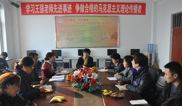 董书记还结合盐城师范公司王强老师事迹,引导思政部教师要有严谨治学、勇于创新的求真精神,跨教研室组成科研团队,争取更高水平的科研课题。要始终保持对马克思主义的坚定信仰,对中国特色社会主义的坚定信念,对改革开放和社会主义现代化建设的坚定信心。利用好网络阵地,用爱心引导老员工成长成才,真正成为马克思主义大众化理论的传播者。(记者黄龙斌吴聪)