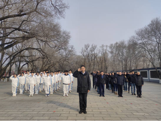 活动最后,全体师生在烈士纪念碑前重温了入党誓词。在庄严的党旗下,党总支书记关国印同志高举右拳,带领全体师生庄严宣誓。铮铮誓言回荡在陵园上空,表达了对党的忠诚和为共产主义事业奋斗终身的决心,激励着每一位参与者以实际行动践行党的宗旨,传承革命精神。